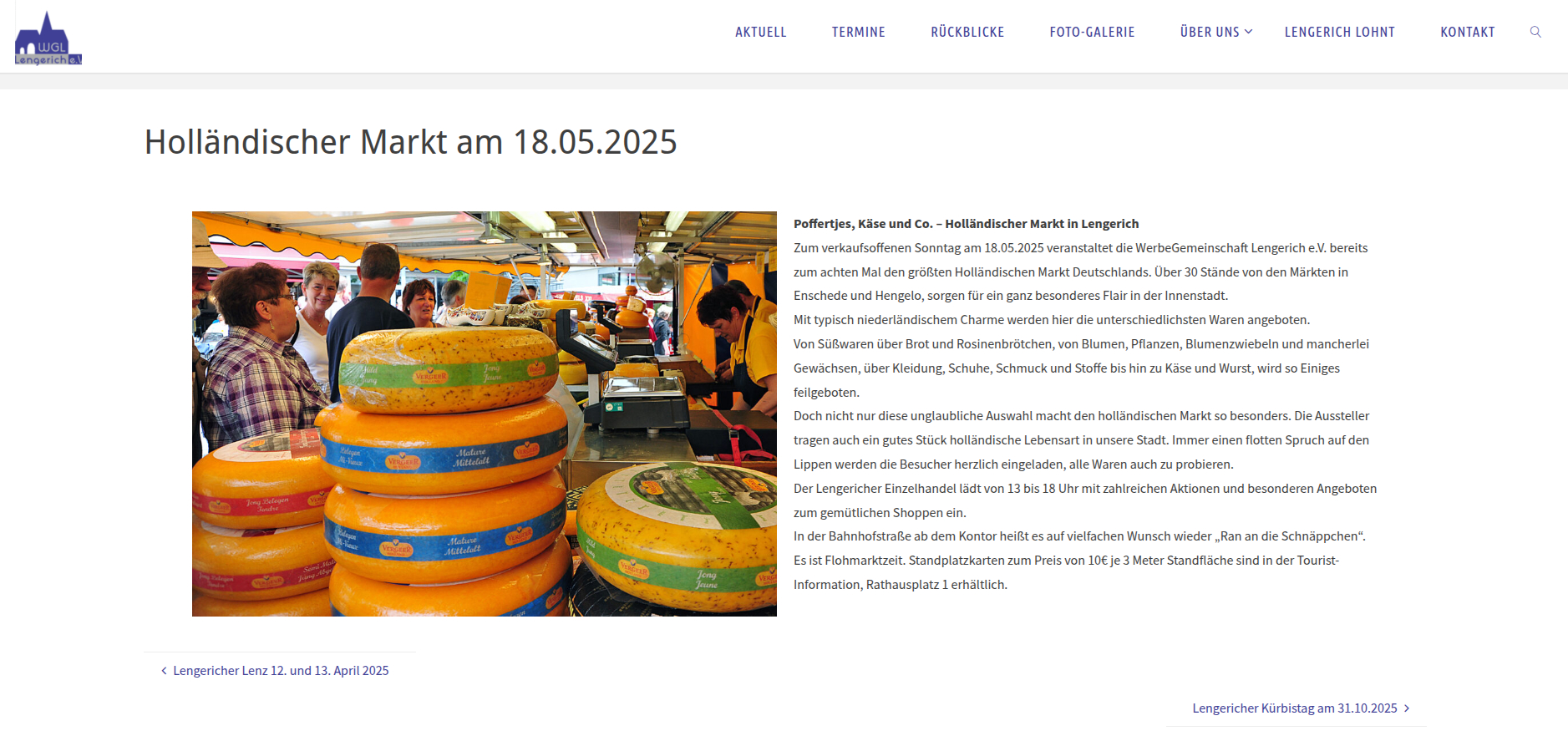 Der Hollandmarkt befindet sich mitten im Zentrum von Lengerich und Sie können zwischen den bestehenden Fußgängerzonen von 11:00 – 18:00 Uhr sicher und entspannt herumspazieren. Lengerich kennt übrigens auch einen verkaufsoffenen Sonntag!
